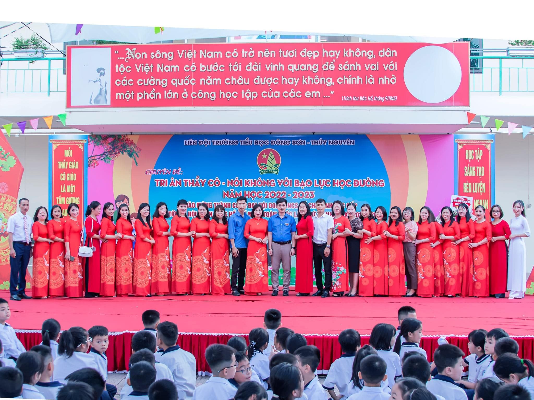 Chiều ngày 16/11/2022, Liên đội trường Tiểu học Đông Sơn - Thủy Nguyên - Hải Phòng tổ chức chuyên đề cấp Huyện "Tri ân thầy cô - Nói không với bạo lực học đường" chào mừng 40 năm ngày Nhà giáo Việt Nam (20/11/1982 - 20/11/2022, chào mừng thành công Đại hội Đoàn TNCS Hồ Chí Minh các cấp tiến tới Đại hội Đoàn TNCS Hồ Chí Minh toàn quốc lần thứ XII